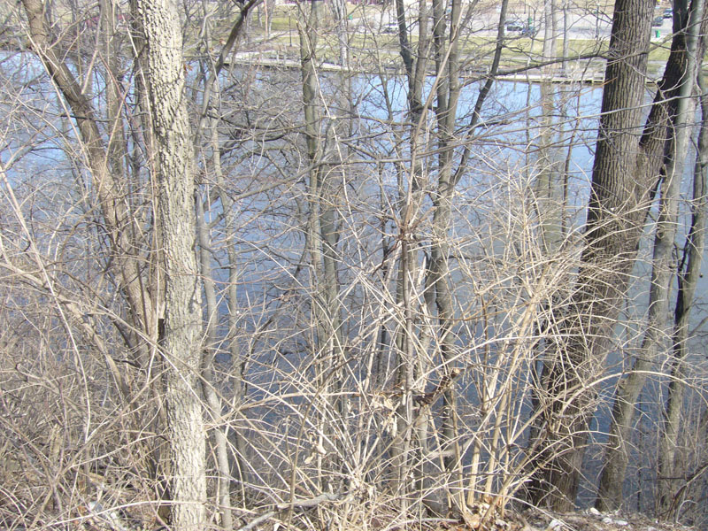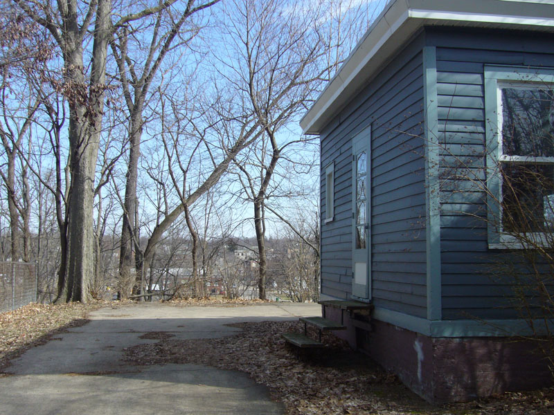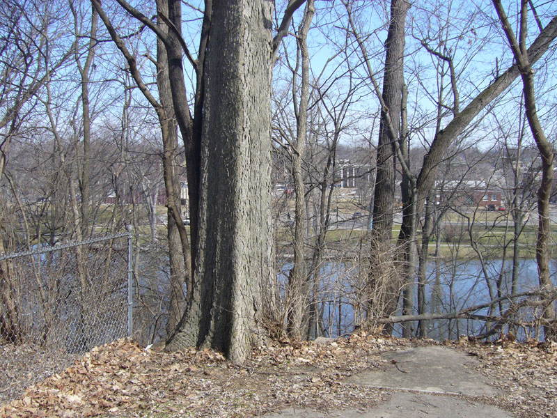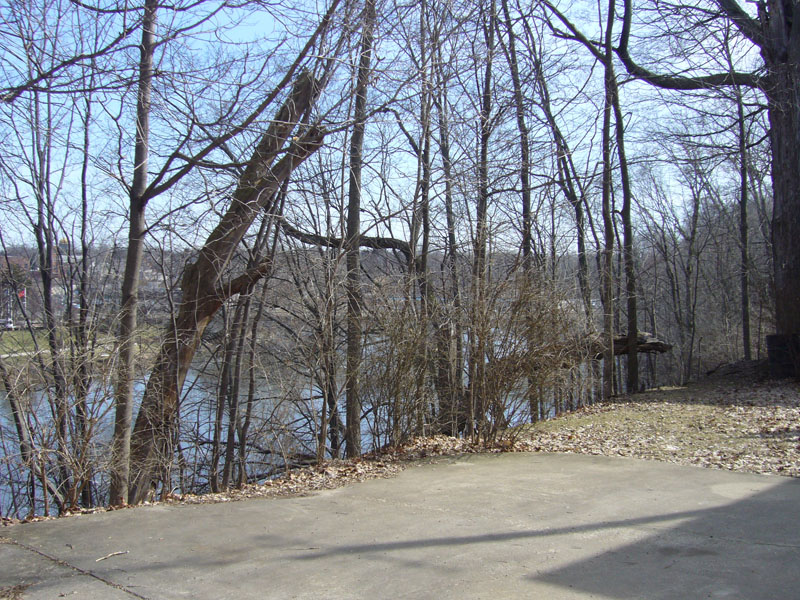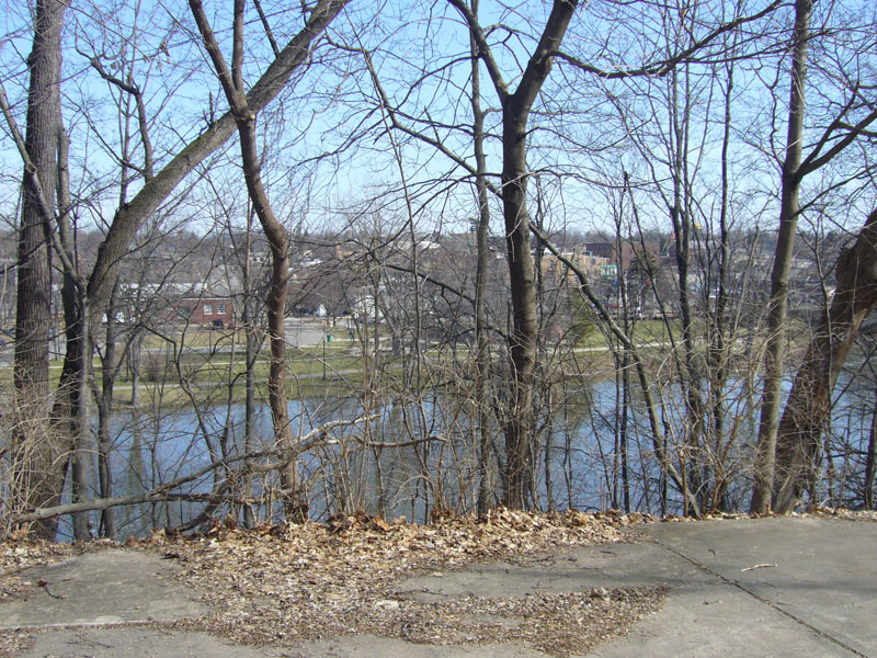 The back part of the property has an excellent view of the river and historic downtown area. The trees will need to be pruned back to open up the view.